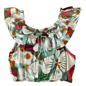 Rachel Roy Multicolor Floral Off the Shoulder Tropical Peasant Crop Top Medium