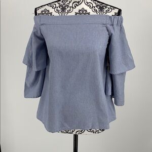 Show off some skin in a fun and flirty way with the help of this off-the-shoulder top that features chic layered bell sleeves. - Square neck - Off-the-shoulder layered bell sleeves - Slips on over head - Solid - Woven construction - Approx. 17" length (size S) - Imported