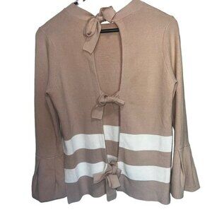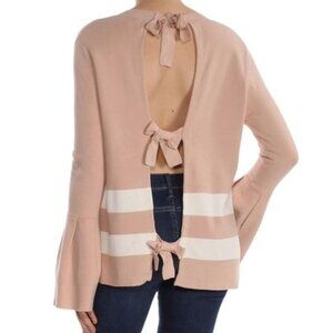 Rachel Roy Open-Back Bow Tie Bell Sleeve Sweater With Striped Hem Size Small