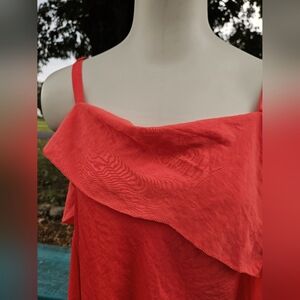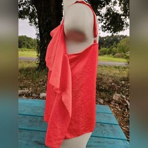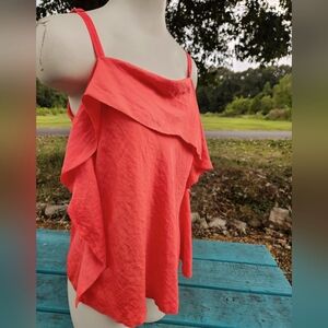 Stunning passion fruit color. Asymmetrical ruffles on the chest and down the sides. Adjustable spaghetti straps. Pair with a cute jacket, skirt or, jeans! New.