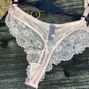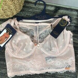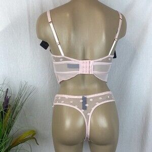 Rachel Roy Pink Unlined Longline Soft Cup Bra & Thong Panty Set 36B L NEW