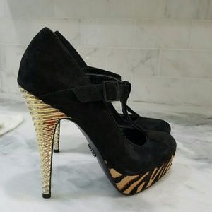 Suede platform pumps. Little to no wear on these shoes. The suede is much darker than what is seen in the pics. Only worn once! These shoes look great with anything. I am selling because I need to make some (much needed) room in my closet.