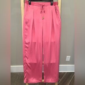Rachel Roy’s Pleated silky wide leg hot pink trousers size large