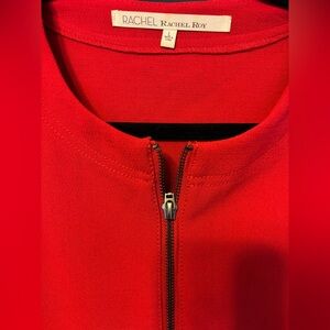 Rachel Roy Red Zip Front Sleeveless Dress with Zipper Pockets Size Large - Very good fabric - Small stain on the inside near the tag as pictured but you can't see it on the outside - will probably come out in the wash