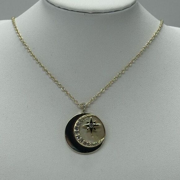 Rachel Roy Rhinestone Crescent Moon Star Medallion Pendant Necklace