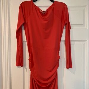 Long sleeved, ruched Rachel Roy dress. Never worn (no tags). Pretty orange, reddish color. Spandex-like material.