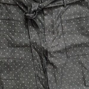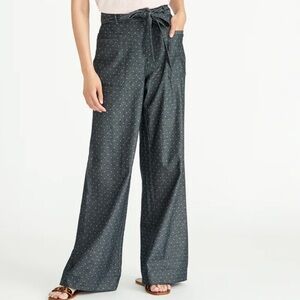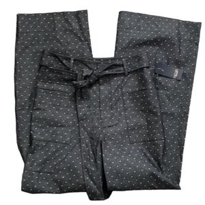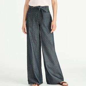 A slouchy pair of trousers is one of our must-haves! A effortless silhouette flatters while the polka dot print makes these FUN! A removable self-belt is chic tied in a bow or loose knot. We love these with slides for maximum slouch in the leg!