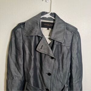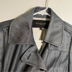 Great condition. Rachel Roy Signature. Trench Coat. Rain coat. Dark gray color. Belted. Size 2. 100% lyocell. Pit to pit laying flat 18” shoulder to hem 24.5” sleeve (shoulder to hem) 24”. All measurements are approximate and taken lying flat. Smoke free home. No trades, offers welcome.