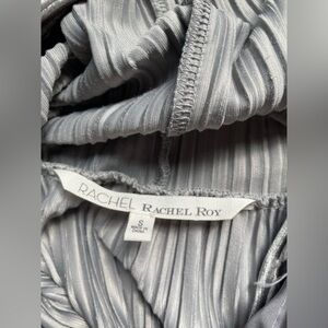Rachel Roy Silver Pleated Velvet Hoodie Sweatshirt with Tie Ribbon Details Size Small. Super soft. Ribbon tie details at hood and around waist. In great condition with no visible signs of wear.