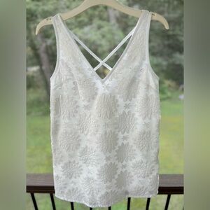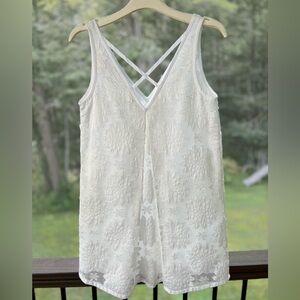 Gorgeous white sleeveless mini dress by Rachel Roy. Lined with floral/lace cut out fabric.