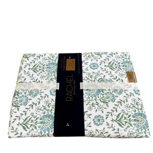 Rachel Roy Spring Floral Cloth Tablecloth 60x84 Green Blue White Easy Care