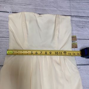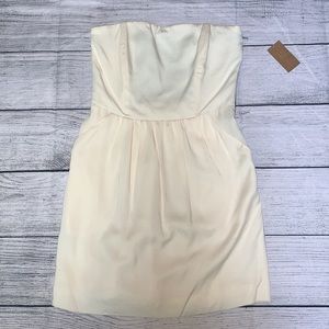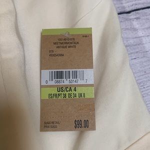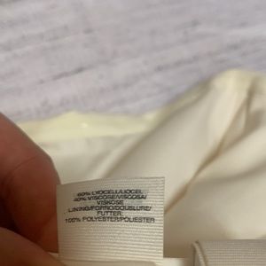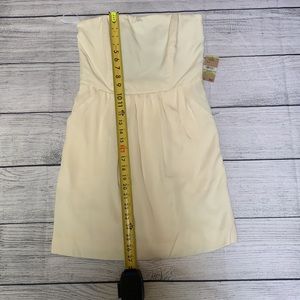 The color is more of a cream color. I am 5”2 and the dress hits 1” above my knee. I do love the fact that it has deep pockets.