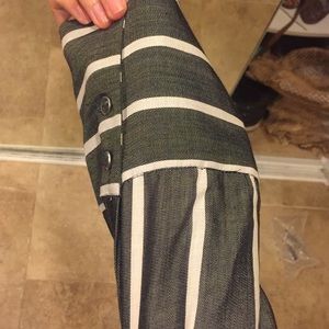 New! Ties at the bottom. Color is charcoal. I’ve styled it a couple ways by tying in the front and back. Has small stitching hiccup on back of blouse as pictured, it’s not a hole. Barely noticeable