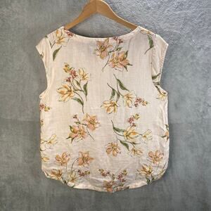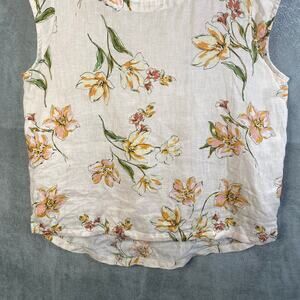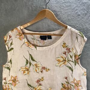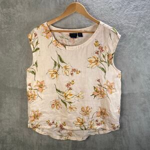 Rachel Roy Top XL Linen Sleeveless Floral Cottage Boho Boxy Lagenlook Relaxed