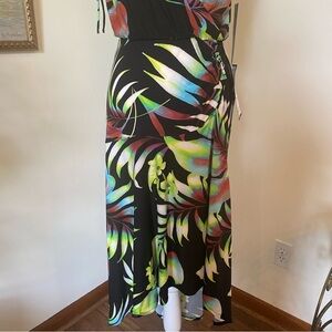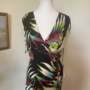 Rachel Roy • Tropical Print Eulalie Shoulder Tie Black Dress • Size S • NWT
