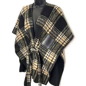 Rachel Roy Women’s Belted Wrap Cape Black Plaid Size Small/Medium