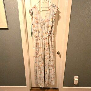 Rachel Roy Women's Blue Crepe Sky Floral V-Neck Flutter Sleeve Dress