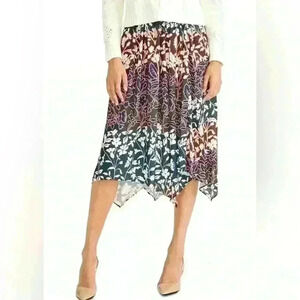 New with tags Rachel Roy Womens Floral Print Multicolored (Dark Blue, Olive Green, Pink, Maroon)Handkerchief Hem Midi Skirt Size XXL.