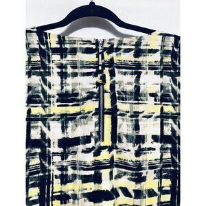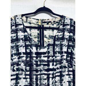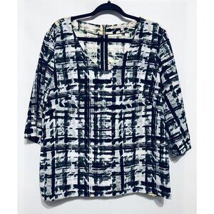Rachel Roy Womens Size XL Black Zippered Plaid 3/4 Sleeve V Neck Blouse