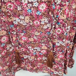 Rachel Roy Women's Splice Neck Tassel Floral Top