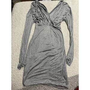 Rachel Roy Womens Sz S Long Sleeve Deep Plunge Bodycon Dress Gray 1OO% Viscose