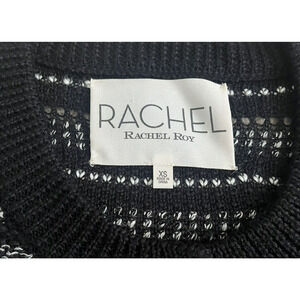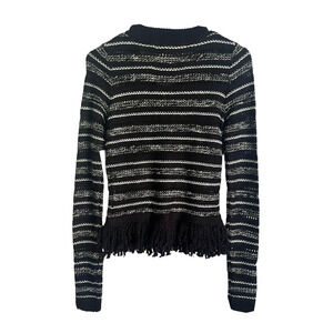 Rachel Roy Wool Blend Button Down Cardigan Fringed Black Size XS Whimsigoth New