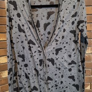 Rachel Roy cotton burnout snap down v neck abstract print long sleeve