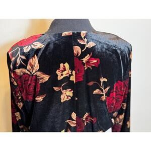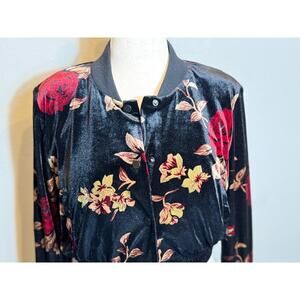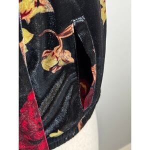 Rachel Roy jacket crop length black red floral velvet snaps bomber pockets Sz M