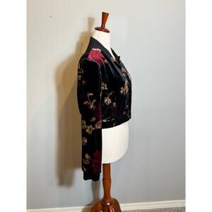 Rachel Roy black floral velvet crop snap up jacket Sz Med