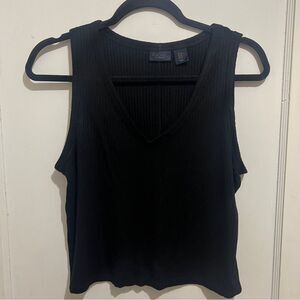 Rachel Roy Black Ribbed V-Neck Tank Top Women's X-Large
