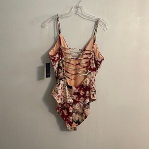 Rachel Roy Bordeaux Floral print 1 piece swimsuit, size XL