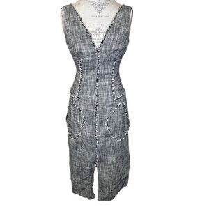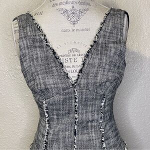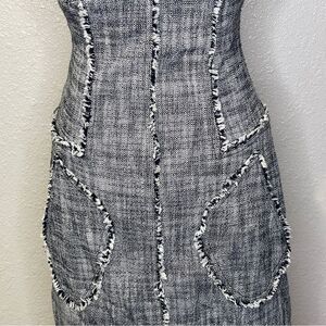 Rachel Roy Collection Raw Edge MIDI Tweed Dress Black White Size 0