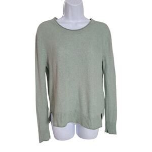 Rachel Zoe 100% 2 Ply Cashmere Pullover Sweater Women Sz M FOAM Green Rolled Hem