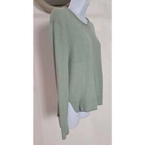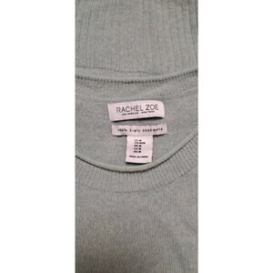 The Rachel Zoe 100% 2 Ply Cashmere Pullover Sweater in mint green is a luxurious and stylish addition to any woman's wardrobe. This tight-knit sweater features a classic crew neckline, long sleeves, and a rolled hem accent. Perfect for various occasions such as travel, parties, or casual outings, this lightweight and breathable sweater is made from high-quality cashmere material. The minimalist and designer theme of this sweater makes it a versatile piece for all seasons, adding a touch of sophistication to any outfit. Im great preowned condition.