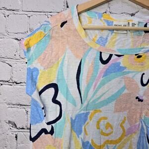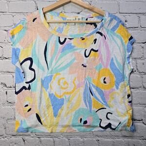 Rachel Zoe 100% Linen Abstract Floral Multicolor Short Sleeve Boxy Tshirt Size Medium
