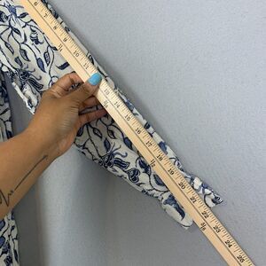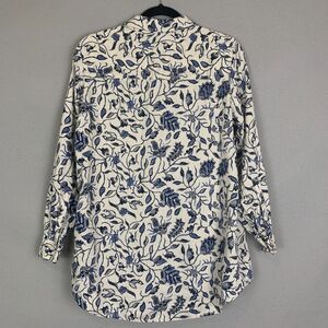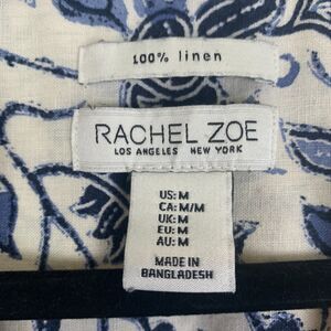 Rachel Zoe 100% Linen Blue White Floral Button Down Shirt Blouse Top Medium