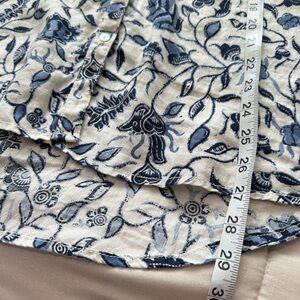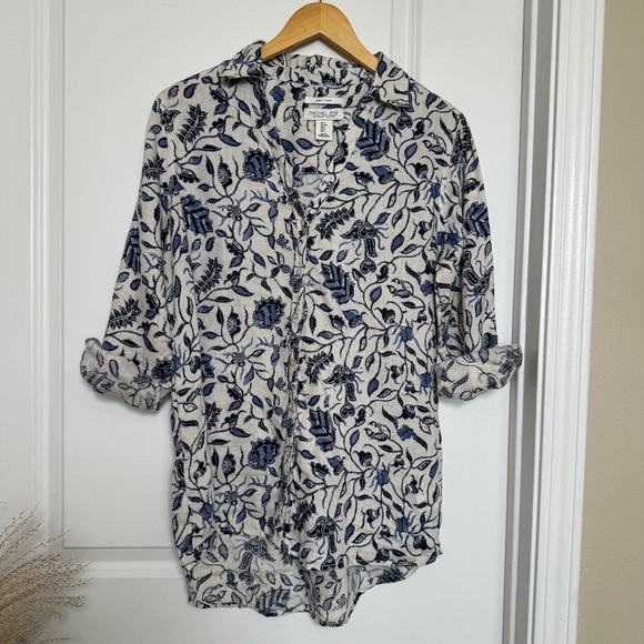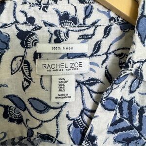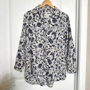 Rachel Zoe 100% Linen Button Down Roll Tab Sleeves Floral Blouse Oversized Small