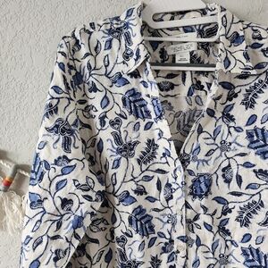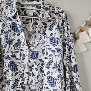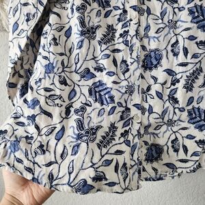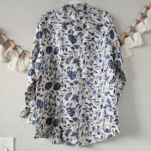 Rachel Zoe 100% Linen Button Up Paisley Floral Peasant Tunic Top Blue Lagenlook
