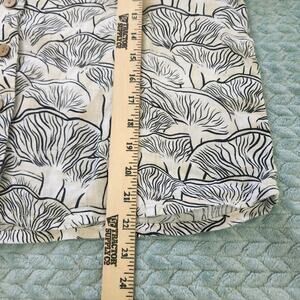 Rachel Zoe 100% Linen Cream Black Boxy Fit Short Sleeve Button Up Shirt Sz Large