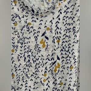 Gorgeous Rachel Zoe blouse crafted from 100% linen in a stunning floral print with navy and mustard tones on a white background. Perfect for any season, this plus-size top in 2X offers lightweight comfort and style. Note: Factory sewing error causes slight unevenness (see last photo). A quick stitch adjustment will restore this beauty!