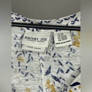 Rachel Zoe 100% Linen Floral Plus Size Blouse 2X White Navy Mustard