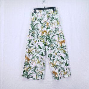 Rachel Zoe 100% Linen Multicolor Jungle Cheetah Monkey Wide Leg Modified Pants