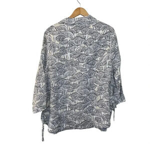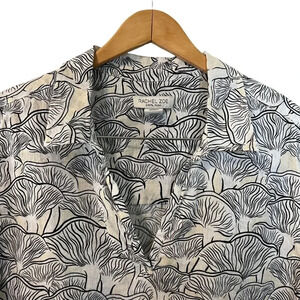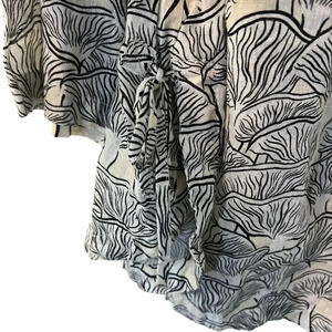 Rachel Zoe 100% Linen Mushroom Pattern Blouse Plus Size 2X Black Cream White Top