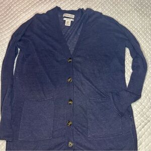 Rachel Zoe 100% Linen Navy Button Front Cardigan Sweater | Size Medium
