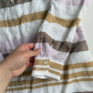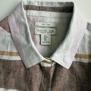 Rachel Zoe 100% Linen Shirt Dress Tunic Large L Striped Coastal Grandma Preppy