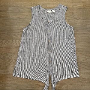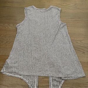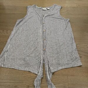 Rachel Zoe 100% Linen Tie Front Striped Sleeveless Blouse Button Down Top