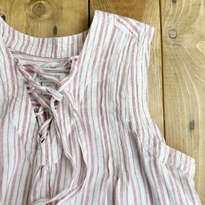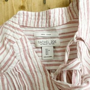 Rachel Zoe 100% Linen Top Tunic Stripes White Pink L