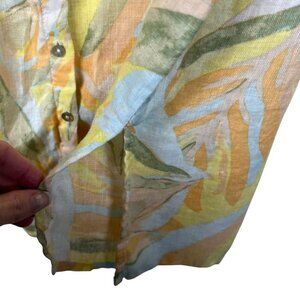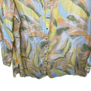 Rachel Zoe 100% Linen Tunic Top Womens 1X Pastel Tropical Roll Tab Sleeve