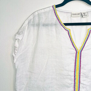Rachel Zoe 100% Linen White Multicolor Embroidered Boxy Top Large Women’s