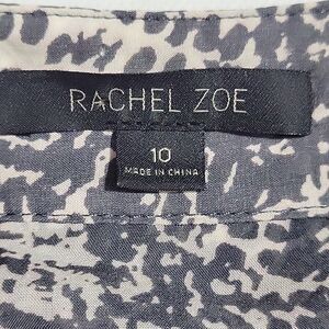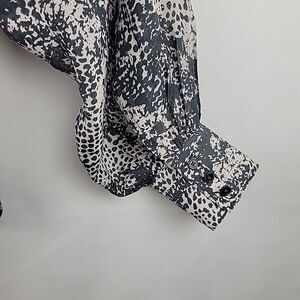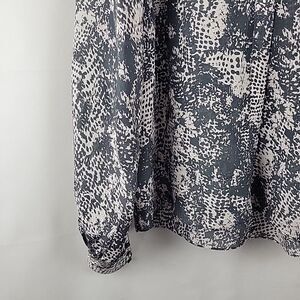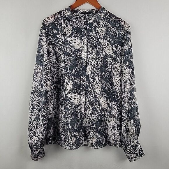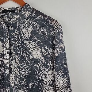 Rachel Zoe 100% Silk Blouse Womens 10 Gray Snakeskin Print Band Collar L/S Top